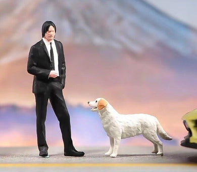 1:64 Painted Figure Model Miniature Resin Diorama Sand Man In Black Suit Dog Toy Collection