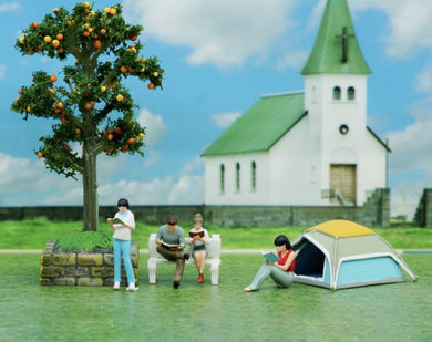 1:64 Painted Figure Model Miniature Resin Diorama Outdoor Picnic Camping Reading Collection