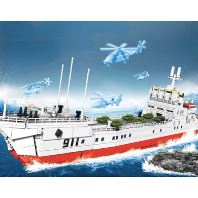 1704PCS Military WW2 6in1 Battle Ship Destroyer Helicopter Submarine Frigate Tank Figure Model Toy Building Block Brick Gift Kids Compatible Lego