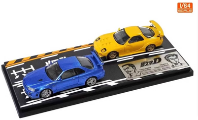 1:64 JDM Comic Initial D RX7 FD GTR R34 Sports Model Diecast Metal Car New