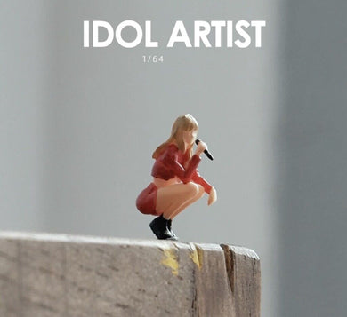 1:64 Painted Figure Mini Model Miniature Car Scenes Resin Girl Singer Squatting