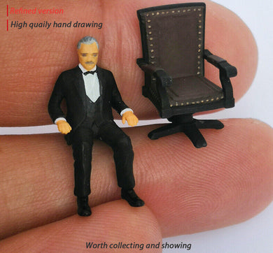 1:64 Painted Figure Mini Model Miniature Resin Diorama Black Suits Man Chair Toy