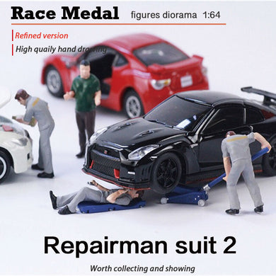 1:64 Painted Figure Mini Model Miniature Resin Diorama Car Garage Repairman Set