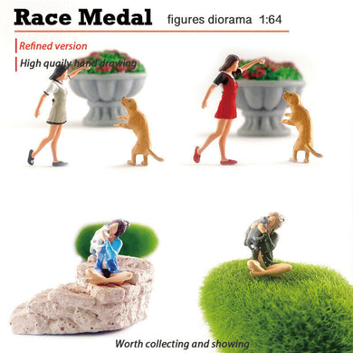 1:64 Painted Figure Mini Model Miniature Resin Diorama Sand Girl Teasing Dog Cat