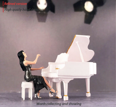 1:64 Painted Figure Mini Model Miniature Resin Diorama Sand Pianist Lady Piano