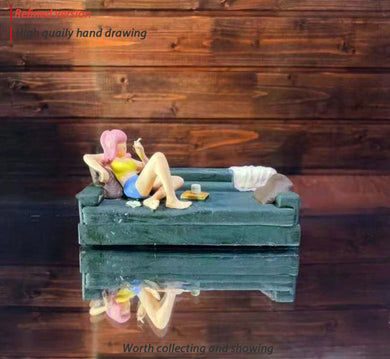 1:64 Painted Figure Mini Model Miniature Resin Diorama Smoking Sofa Girl Recline