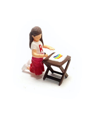 1:64 Painted Figure Mini Model Miniature Resin Diorama Toy Girl Knelt on Drawing