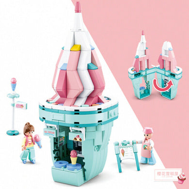 301PCS City Street Ice Cream Food Store Shop Building Blocks Brick Model Figure Fully Compatible With Lego
