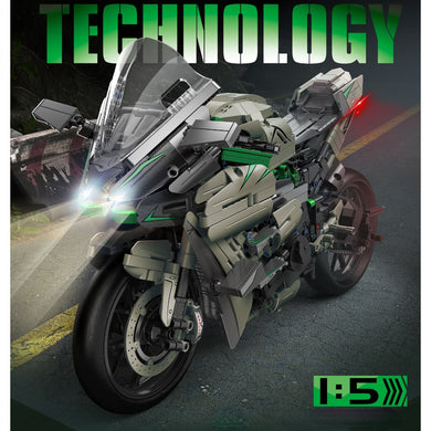 1968PCS MOC Technic Speed H2R Racing Sports Motorcycle Motor Bike Model Toy Building Block Brick Gift Kids Compatible Lego 1:5 Light