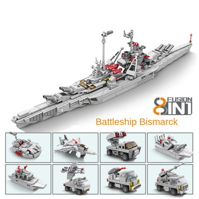 758PCS Military WW2 8in1 KMS Bismarck Battleship Model Toy Building Block Brick Gift Kids DIY Set New Compatible Lego