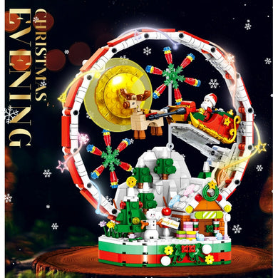 878PCS MOC Micro Mini Christmas Eve Ferries Wheel Santa House Model Toy Building Block Brick Gift Kids Display Light