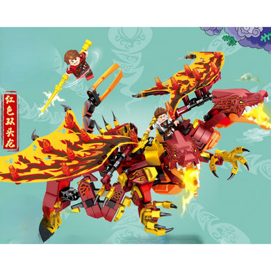 738PCS MOC Ninja Red Twin Head Dragon Figure Model Toy Building Block Brick Gift Kids Compatible Lego