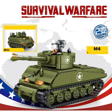 649PCS Military WW2 2in1 M4 Sherman Medium Tank M113 Armored Personnel Carrier Model Toy Building Block Brick Gift Kids DIY Compatible Lego