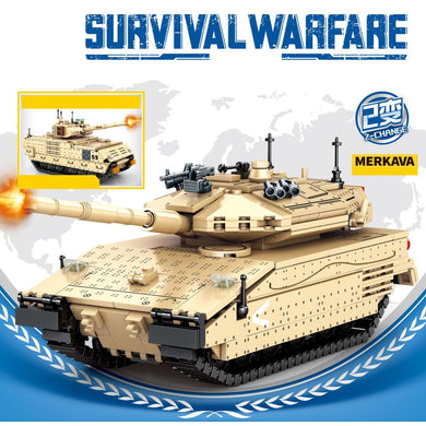 659PCS Military WW2 2in1 Merkava Main Battle Tank M2 Bradley Fighting Vehicle Model Toy Building Block Brick Gift Kids DIY Compatible Lego