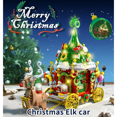 648PCS MOC Christmas Elk Reindeer Cart Car Santa Model Toy Building Block Brick Gift Kids Compatible Lego Light