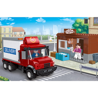 325PCS MOC City Food Delivery Truck Coffee Shop Store Figure Model Toy Building Block Brick Gift Kids Compatible Lego