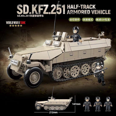 714PCS MOC Military SD.KFZ.251 Half Track Armored Vehicle Figure Model Toy Building Block Brick Gift Kids DIY Set New Compatible Lego