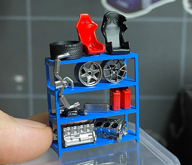 1:64 Storage Shelf Engine Part Seat Rims Garage Scene Model Resin Display Car