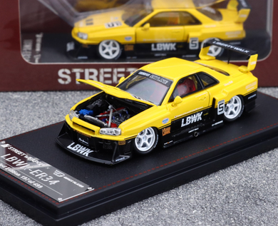 SW 1:64 Yellow Black Skyline GTR ER34 LBWK #5 Sports Model Diecast Metal Car