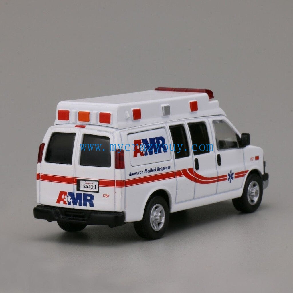 1:64 596 White AMR Ambulance Express 3500 Van Model Diecast Metal Car New Collection