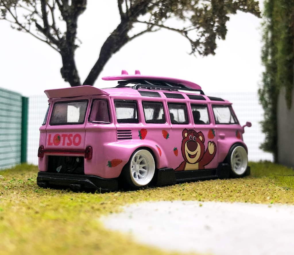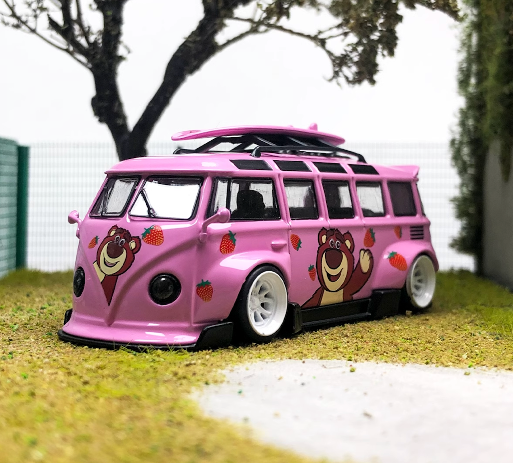 1:64 Flame Pink VW T1 Van Camper Kombi Sports Model Diecast Metal Car New Collection