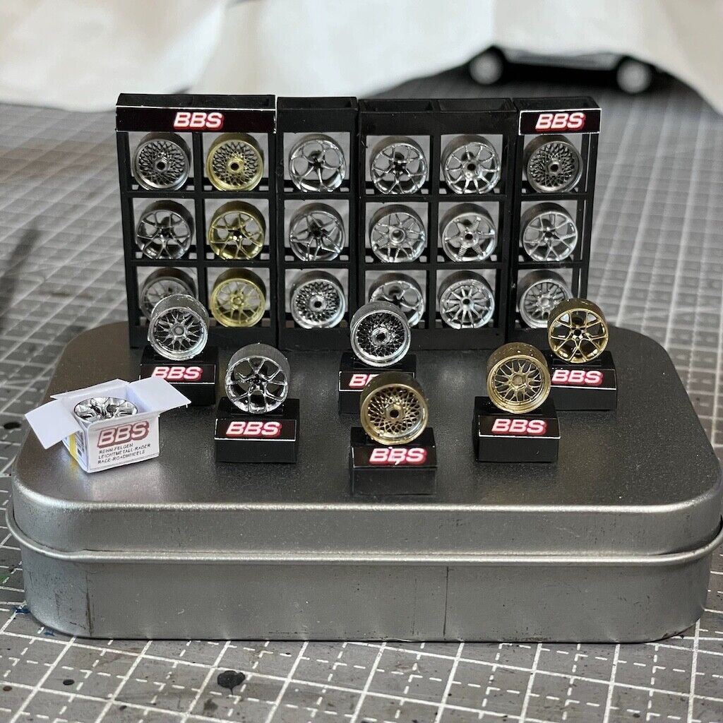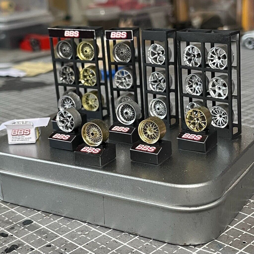 1:64 Garage Repair Shop Display Scene BBS Rims Set Model Resin For Car New Collection