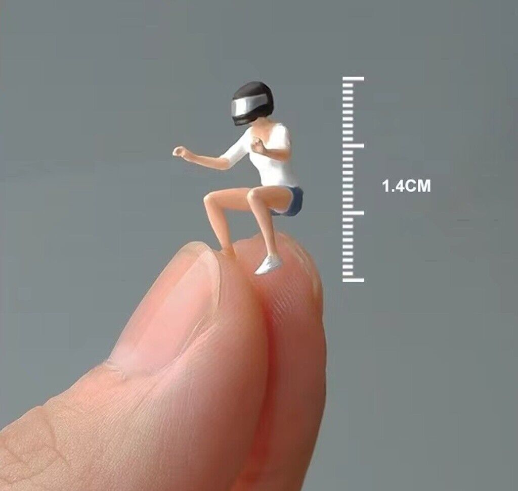 1:64 Painted Figure Mini Model Miniature Car Scenes Resin Black Helmet Girl Lady