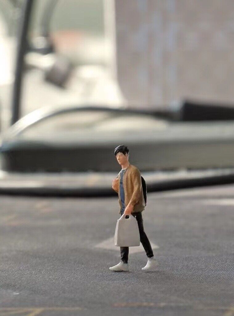 1:64 Painted Figure Mini Model Miniature Car Scenes Resin Casual Man Carring Bag