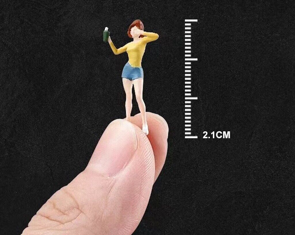 1:64 Painted Figure Mini Model Miniature Car Scenes Resin Toy Posing Girl Lady