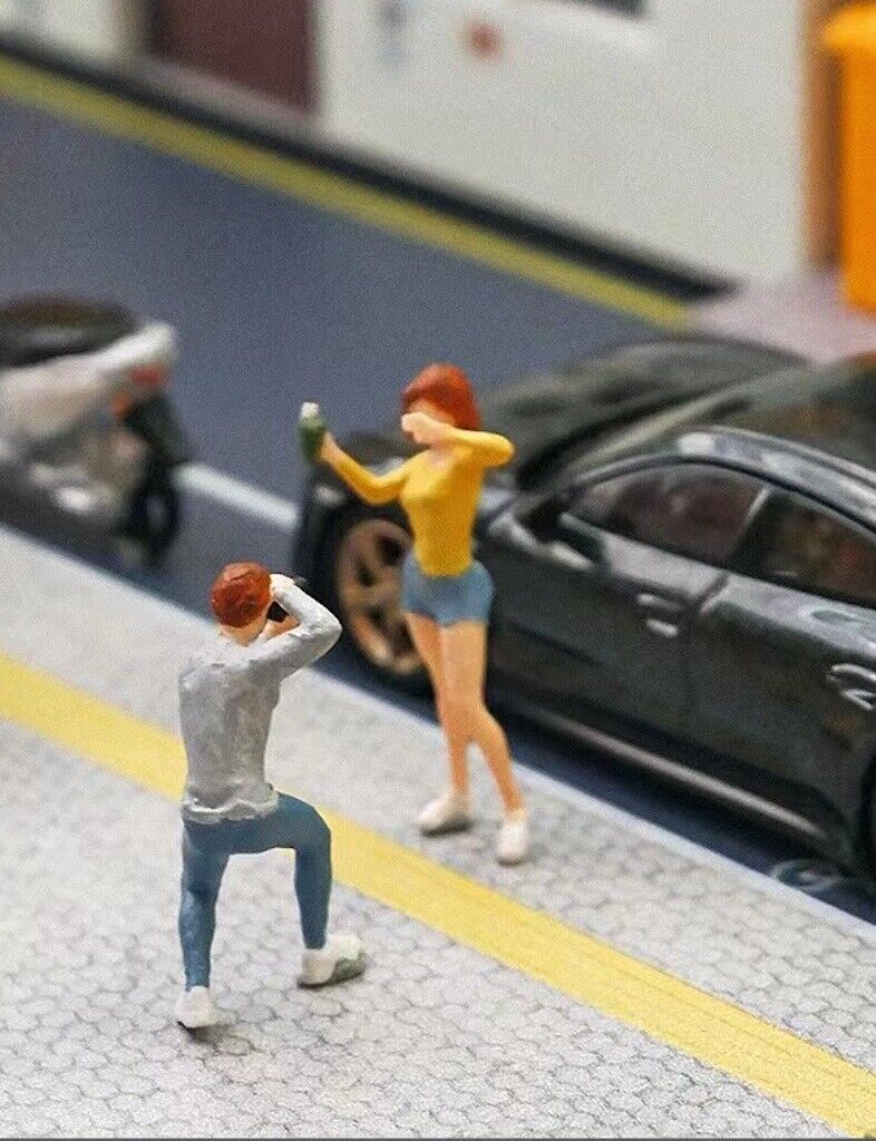 • Load image into Gallery viewer, 1:64 Painted Figure Mini Model Miniature Car Scenes Resin Toy Posing Girl Lady