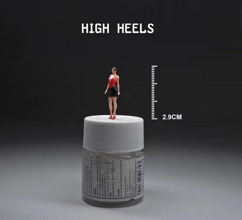 1:64 Painted Figure Mini Model Miniature Car Scenes Resin Toy Red High Heel Lady