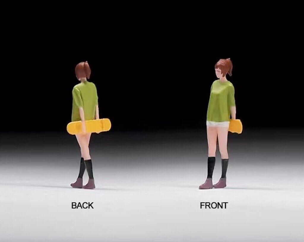 1:64 Painted Figure Mini Model Miniature Car Scenes Resin Toy Skater Girl Board
