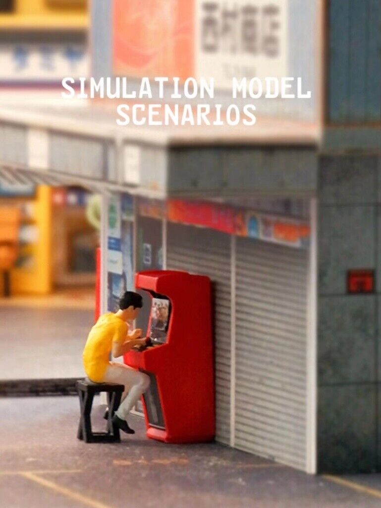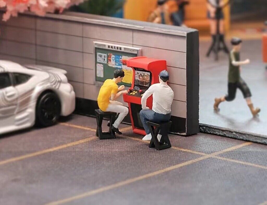 1:64 Painted Figure Mini Model Miniature Resin Diorama Arcade Machine Boy Set