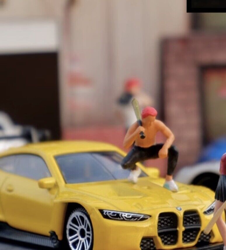 1:64 Painted Figure Mini Model Miniature Resin Diorama BaseballBat Squatting Boy