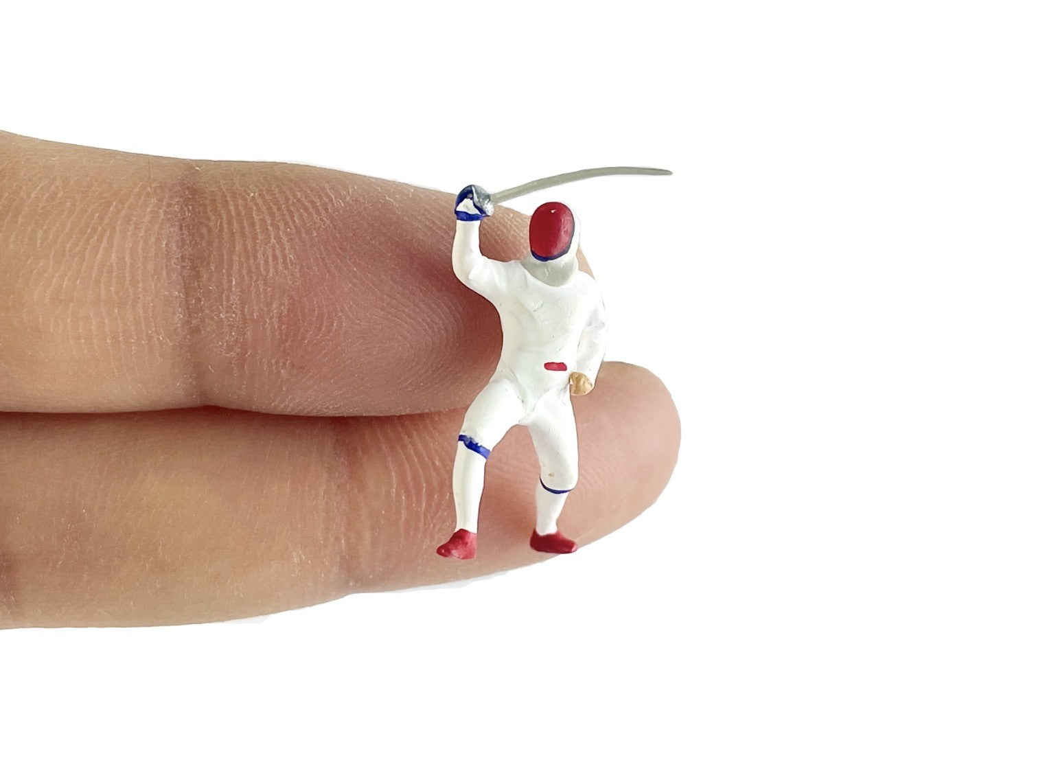 1:64 Painted Figure Mini Model Miniature Resin Diorama Fencing Athlete Fencer