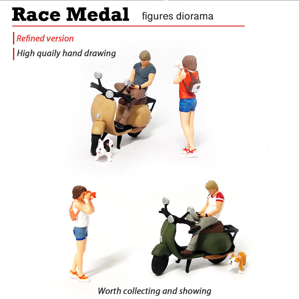 1:64 Painted Figure Mini Model Miniature Resin Diorama Motocycle Couple Lovers