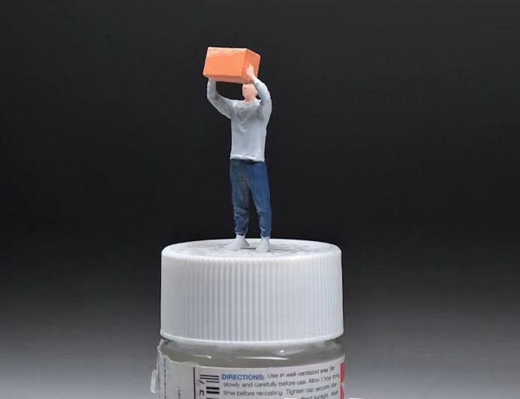 1:64 Painted Figure Mini Model Miniature Resin Diorama Sand Man Lifting Box