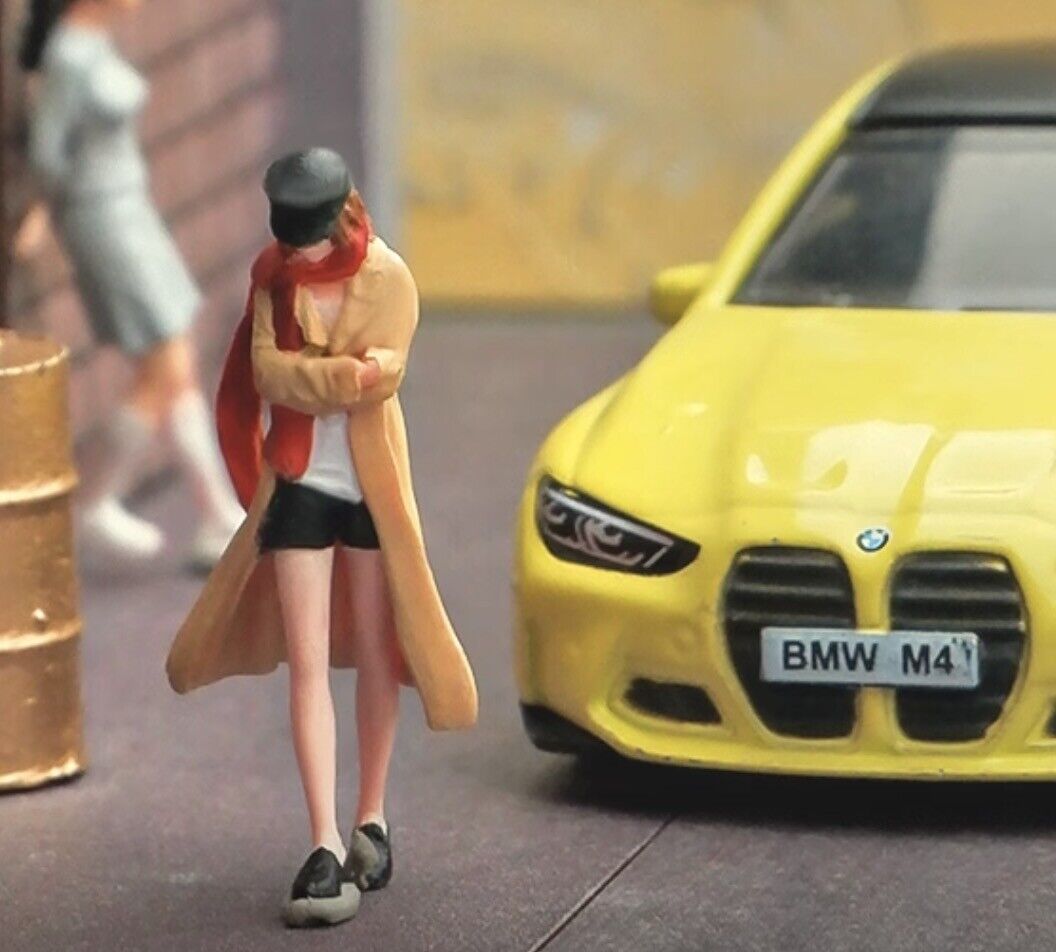 1:64 Painted Figure Mini Model Miniature Resin Diorama Sand Trendy Girl Windcoat New