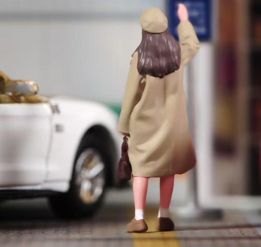 1:64 Painted Figure Mini Model Miniature Resin Diorama Sand Winter Coat Girl Hat