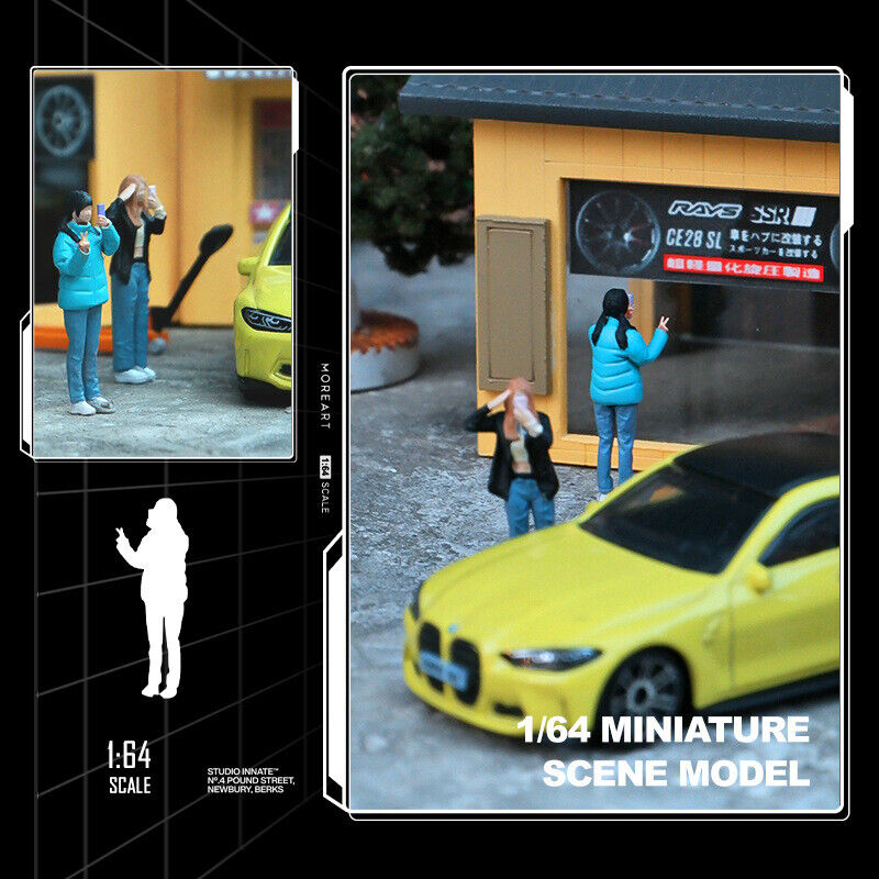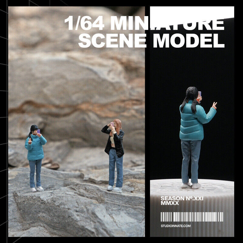 1:64 Painted Figure Mini Model Miniature Resin Diorama Selfie Down Jacket Girl New Scene