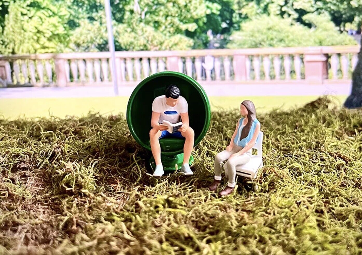 1:64 Painted Figure Mini Model Miniature Resin Diorama Set Boy Girl Chair Sand