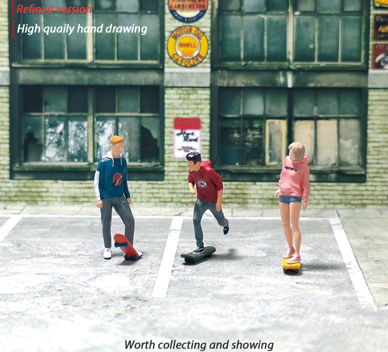 1:64 Painted Figure Mini Model Miniature Resin Diorama Toy Skate Board Boys Girl