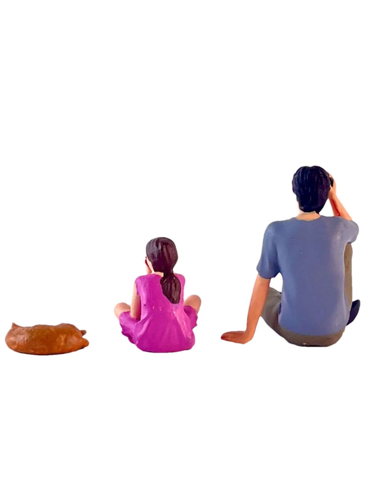1:64 Painted Figure Model Miniature Resin Diorama Little Girl Young Man Cat Toy