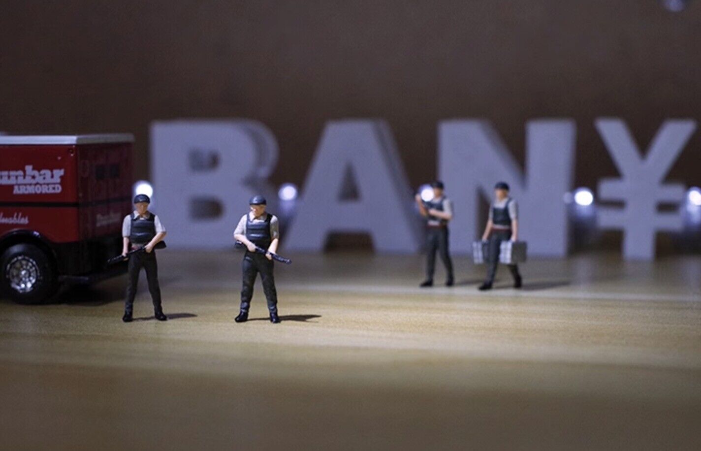 1:64 Painted Figure Model Miniature Resin Diorama Sand Bank Security Guards Set