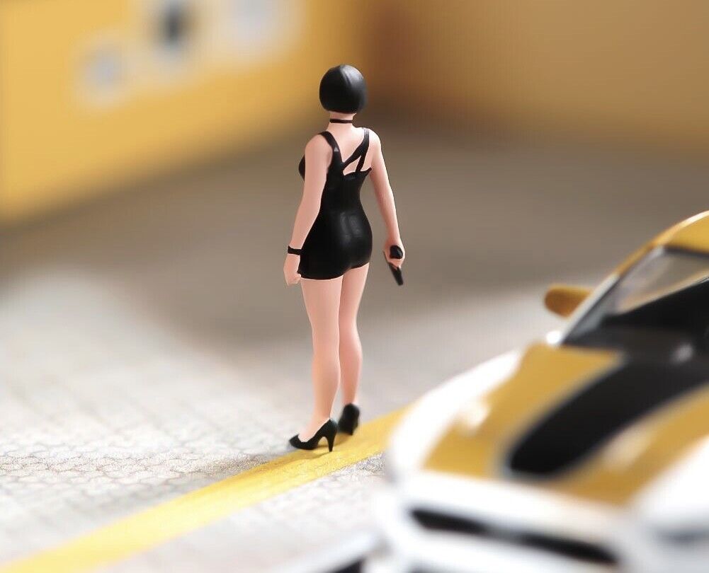 1:64 Painted Figure Model Miniature Resin Diorama Sand Black Dress Lady Girl Toy