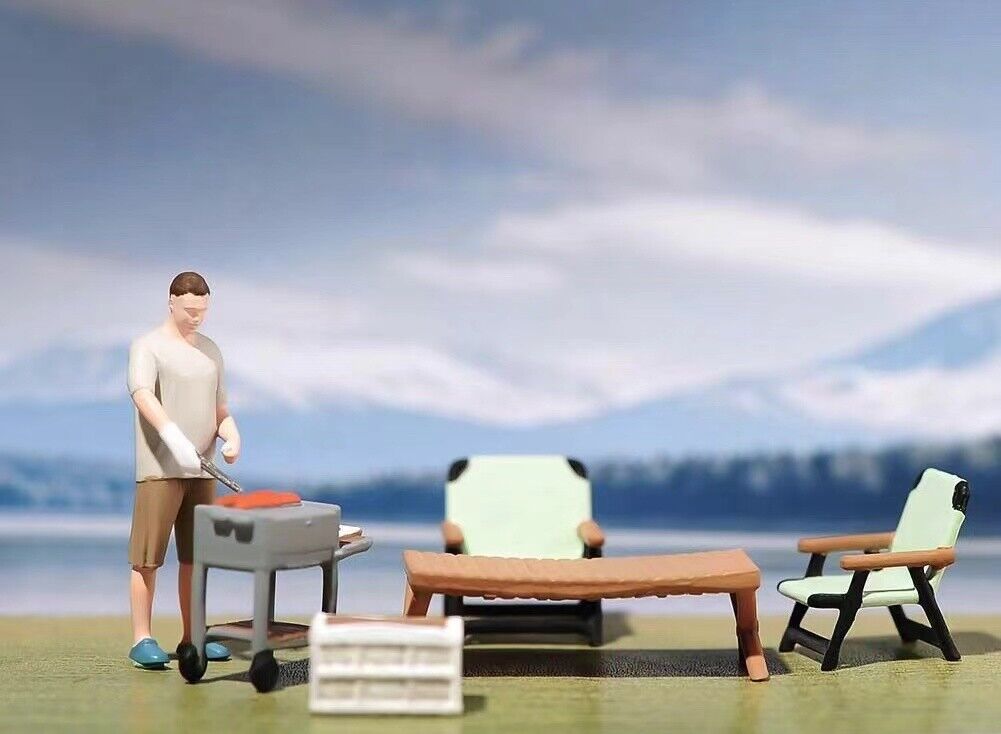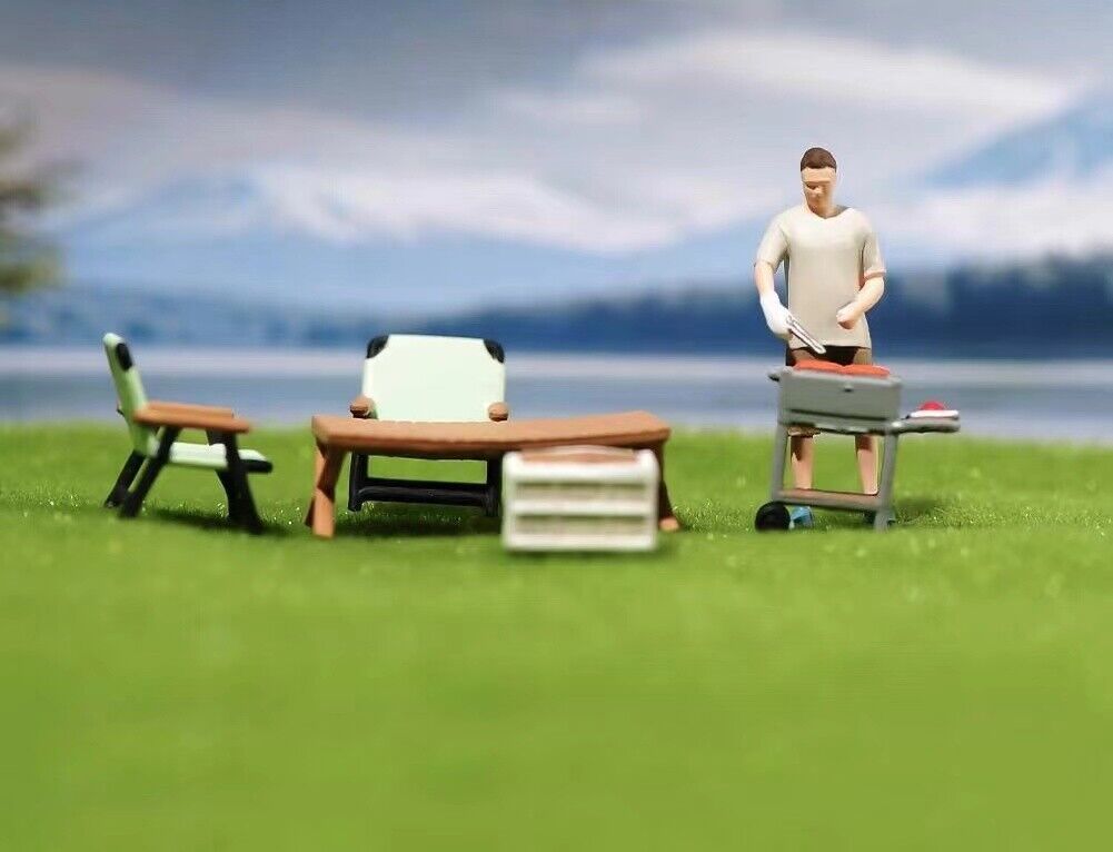 1:64 Painted Figure Model Miniature Resin Diorama Sand Camping Outdoor Barbecue Collection