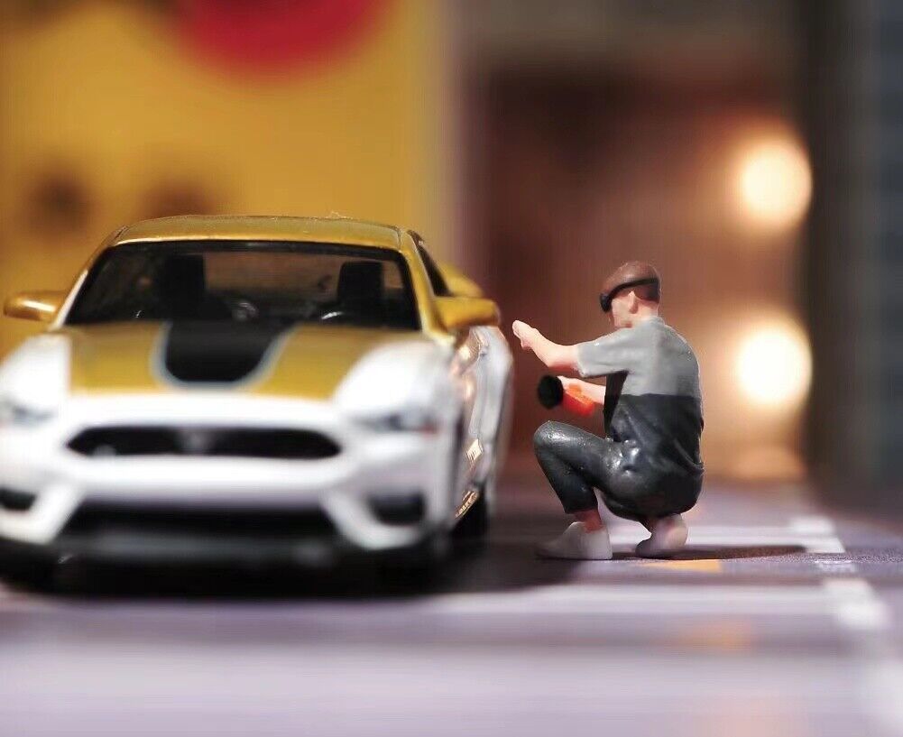 1:64 Painted Figure Model Miniature Resin Diorama Sand Car Polishing Worker Man Collection
