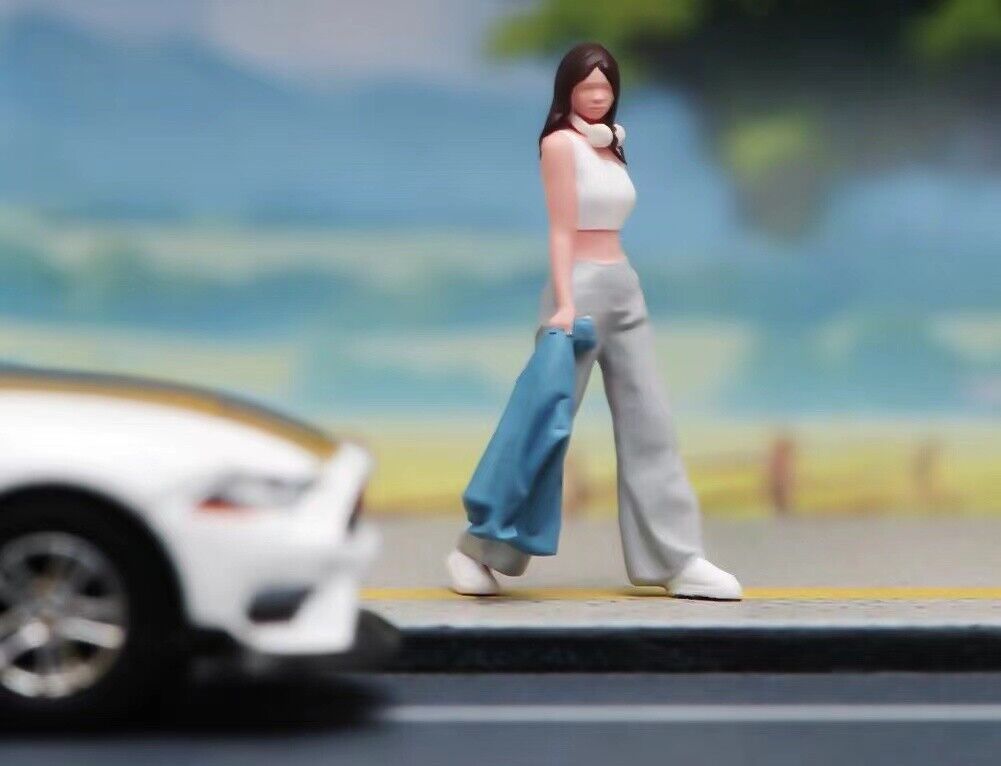 1:64 Painted Figure Model Miniature Resin Diorama Sand Girl Carrying Clothes Toy New Collection