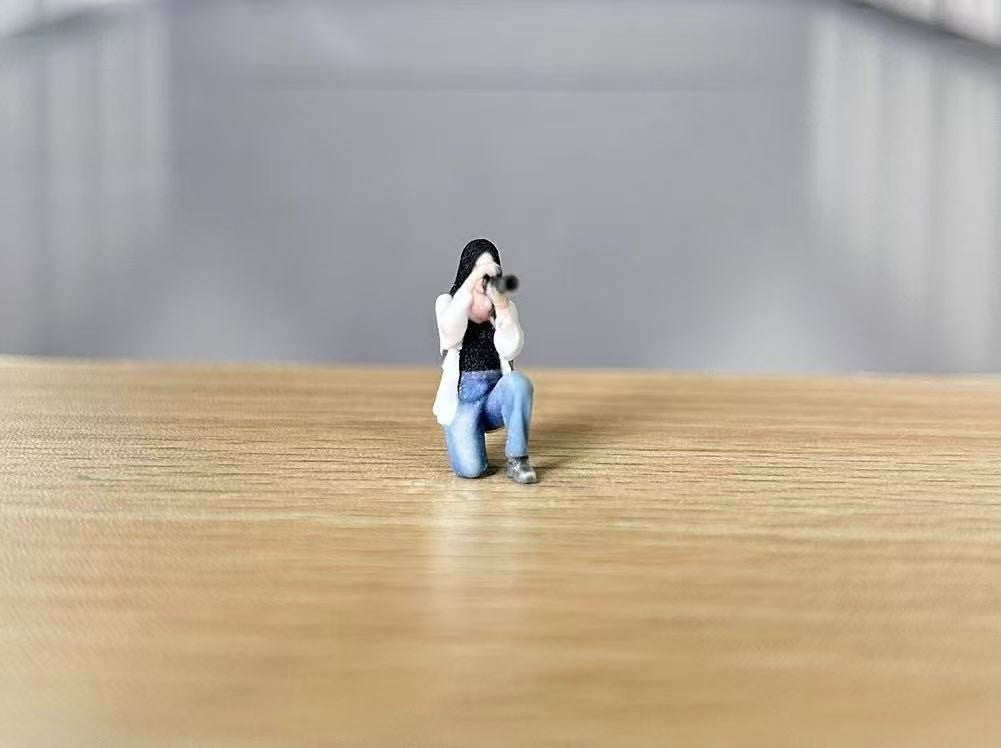 1:64 Painted Figure Model Miniature Resin Diorama Sand Kneeling Pose Camera Lady