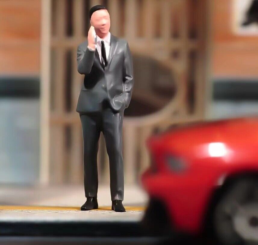 1:64 Painted Figure Model Miniature Resin Diorama Sand Man In Suit On Phone Toy New Collection